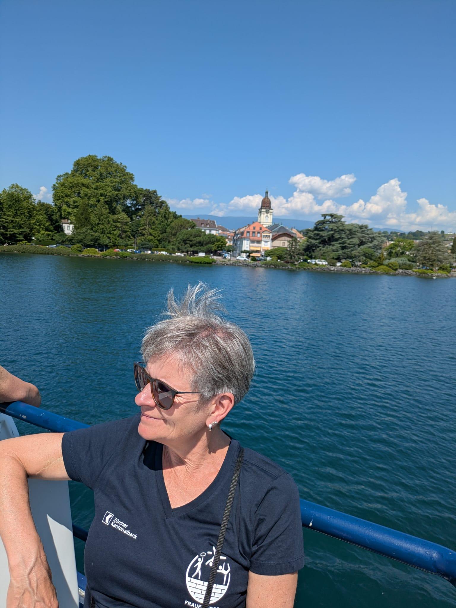 Am Samstag trafen sich alle Pfungemer (TV/DR/FR/MR) an der Schiffstation und machten gemeinsam eine Schifffahrt nach Nyon. Die einen genossen die Schattenplätze, die anderen den Fahrtwind und die Köstlichkeiten, welche das Schiff zu bieten hatte. In Nyon angekommen, war der nächste Treffpunkt beim Schloss – da mussten doch einige Stufen erklommen werden. Es hat sich gelohnt – die Aussicht war genial, und viele wunderbare Fotos konnten gemacht werden.